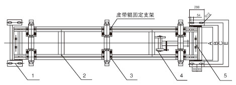 1:稱重架  2:稱重橋  3:托輥架及托輥  4:測速機構(gòu)及測速傳感器  5:荷重傳感器  6:皮帶輸送機并配備微機計量控制器